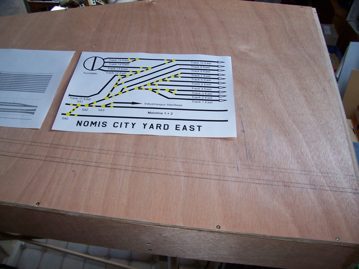 Zur Erweiterung der HFD wird nun mit dem Bau des Nomis City Yard begonnen. Es werden 6 Segmente mit den Einzelmaßen 132cm x 60cm gebaut. Dabei wird auf der durchgehenden Strecke ein Personenbahnhof mit 4 Gleisen eingerichtet. Der für die Stadt Nomis City dienen soll. Ebenso gehen diverse Industriegleisanschlüsse von der Hauptstrecke ab. Der Yard ist in East und West unterteilt. Wobei im East-Teil eine Drehscheibe gebaut wird. Im West-Teil sind Abstellgleise vorgesehen. Es werden 10 Gleise bereitgehalten für die langen Güterzüge um den Ausstellungsbetrieb abwechslungsreich gestalten zu können. Die Gesamtlänge der Segmente beträgt 792cm.